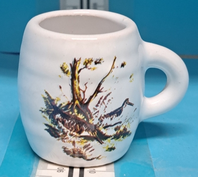 Hordó formájú kicsi kerámia korsó vadas matricával