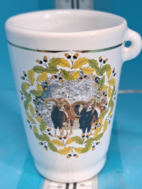 Kerámia kináló pohár, füles, ca 1dl, mufflon